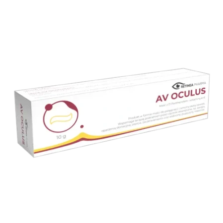 - AV Oculus maść jest przeznaczona do pielęgnacji i ochrony delikatnej skóry powiek oraz okolicy oczu,łagodzi podrażnienia,zaczerwienienia i swędzenie,wspiera regenerację naskórka i zapobiega jego rogowaceniu.
