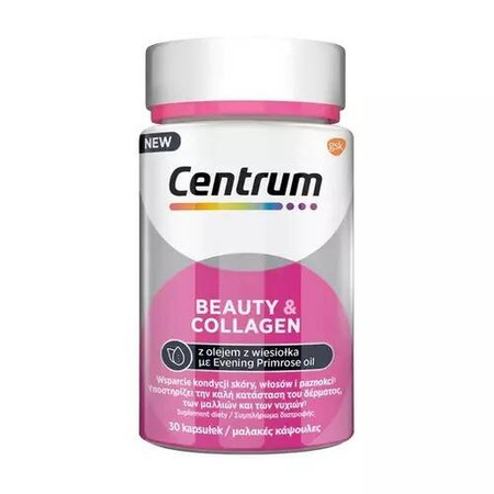 Centrum Beauty & Collagen, to miękkie kapsułki z kompleksową formułą łączącą kolagen, witaminy, minerały i olej z wiesiołka - dla skóry, włosów i paznokci.