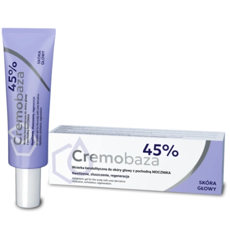 - Cremobaza 45% Wcierka do skóry głowy jest na łuszczenie, swędzenie,suchość,podrażnienia i przetłuszczanie się skóry głowy,działając regenerująco i keratolitycznie dzięki wysokiej zawartości pochodnej mocznika,która pomaga usunąć martwy naskórek.