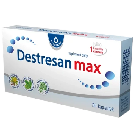 - Destresan Max tabletki pomagające w radzeniu sobie ze stresem,napięciem nerwowym,niepokojem i przepracowaniem,dzięki kompozycji ekstraktów z melisy, różeńca górskiego,magnezu i witaminy B6,wspierają nastrój i prawidłowe funkcjonowanie układu nerwowego.