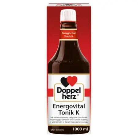 - Doppelherz Energovital Tonik K to syrop roślinny do wspierania czynności serca i układu krążenia,szczególnie w okresach napięcia nerwowego;jego skład oparty na głogu, melisie,rozmarynie i kozłku lekarskim działa uspokajająco i wzmacniająco na serce.