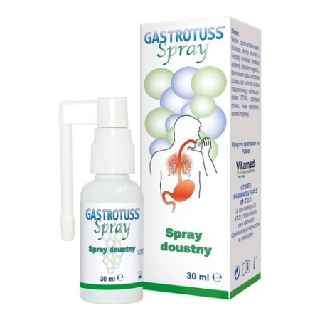 Gastrotuss Spray to wyrób medyczny przeznaczony do łagodzenia objawów refluksu krtaniowo-gardłowego, takich jak uczucie przeszkody w gardle, kaszel, suchość, podrażnienie gardła i krtani. Produkt tworzy ochronną warstwę na błonach śluzowych, wspierając ich regenerację i ograniczając narażenie na drażniące działanie treści żołądkowej.