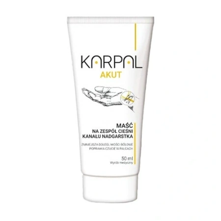 - Karpal Akut w postaci maści do stosowania na skórę, który pomaga zmniejszyć dolegliwości bólowe i wspomaga czucie w palcach. Preparat przeznaczony jest do masażu w przypadku występowania zespołu cieśni kanału nadgarstka.