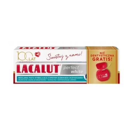 Lacalut Perfect White 75 ml + nić dentystyczna - na wybielanie i higienę zębów