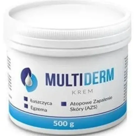 - Multiderm krem-emolient, idealny do pielęgnacji bardzo suchej, podrażnionej skóry z atopowym zapaleniem skóry, egzemą i łuszczycą, łagodzący objawy, nawilżający, natłuszczający, wzmacniający barierę skórną i chroniący przed czynnikami zewnętrznymi.