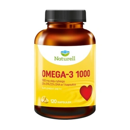 - Naturell Omega-3 1000 jest przeznaczony do wspierania zdrowia serca,mózgu i wzroku,dostarczając kwasy omega-3 z oleju z małych ryb,które pomagają utrzymać prawidłowy poziom trójglicerydów, wspierają pracę mózgu, widzenie i ogólną kondycję układu krążenia.