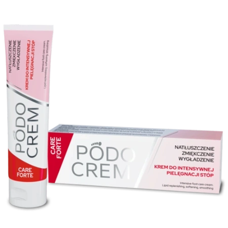 - Podocrem Care Forte to intensywnie regenerujący krem do stóp przeznaczony dla bardzo suchej, pękającej, swędzącej i zrogowaciałej skóry, który głęboko nawilża, natłuszcza, odbudowuje barierę lipidową, łagodzi stany zapalne i zmniejsza potliwość.