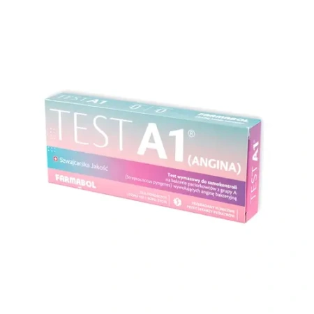- Test A1 Angina to domowy test wymazowy służący do szybkiego wykrywania paciorkowców grupy A, które są główną przyczyną anginy bakteryjnej, co pozwala na odróżnienie jej od infekcji wirusowej i szybkie wdrożenie antybiotykoterapii.